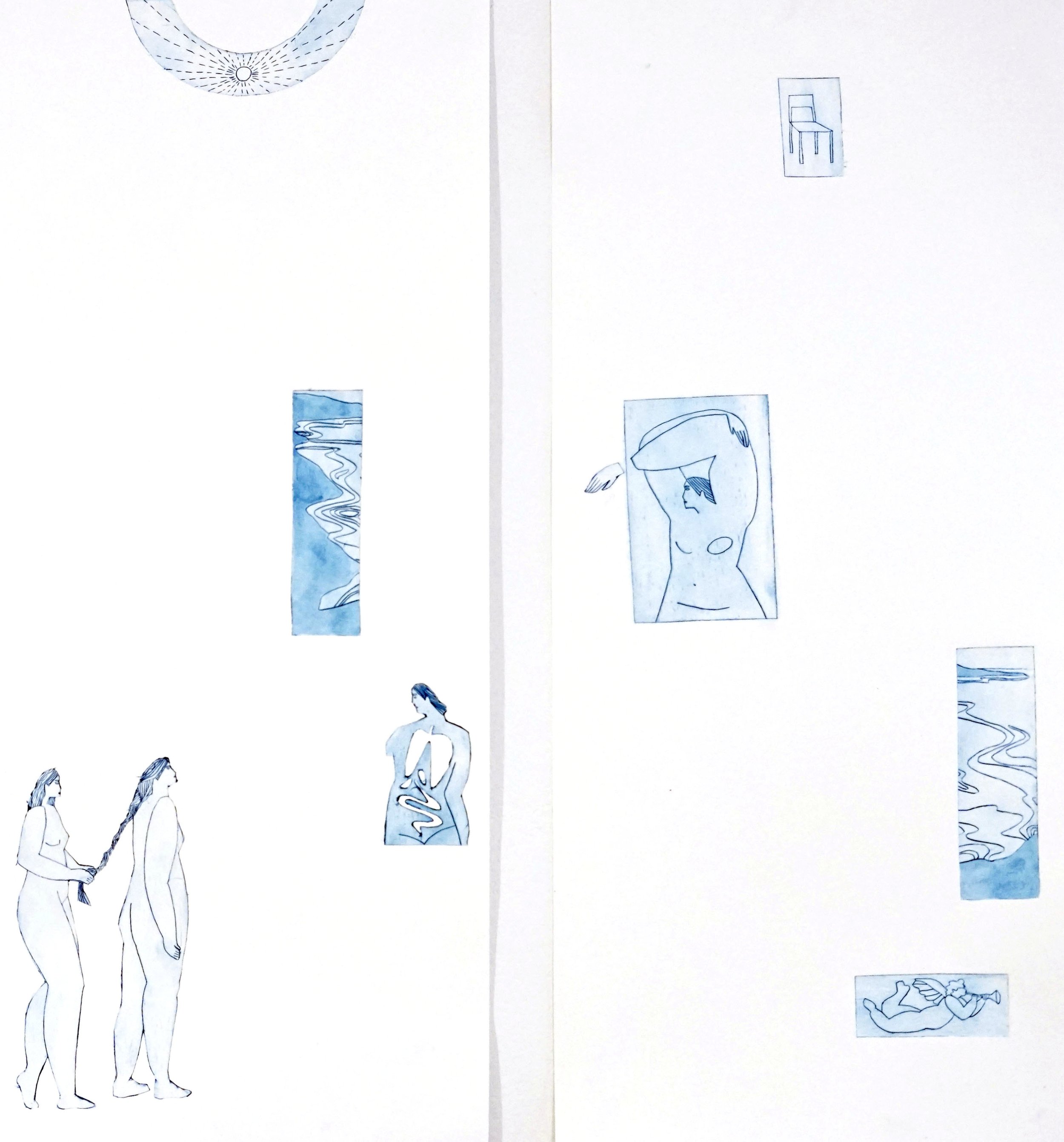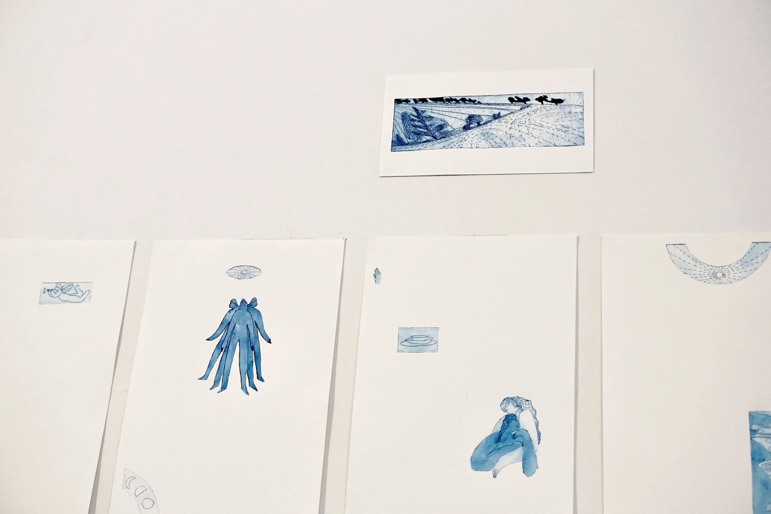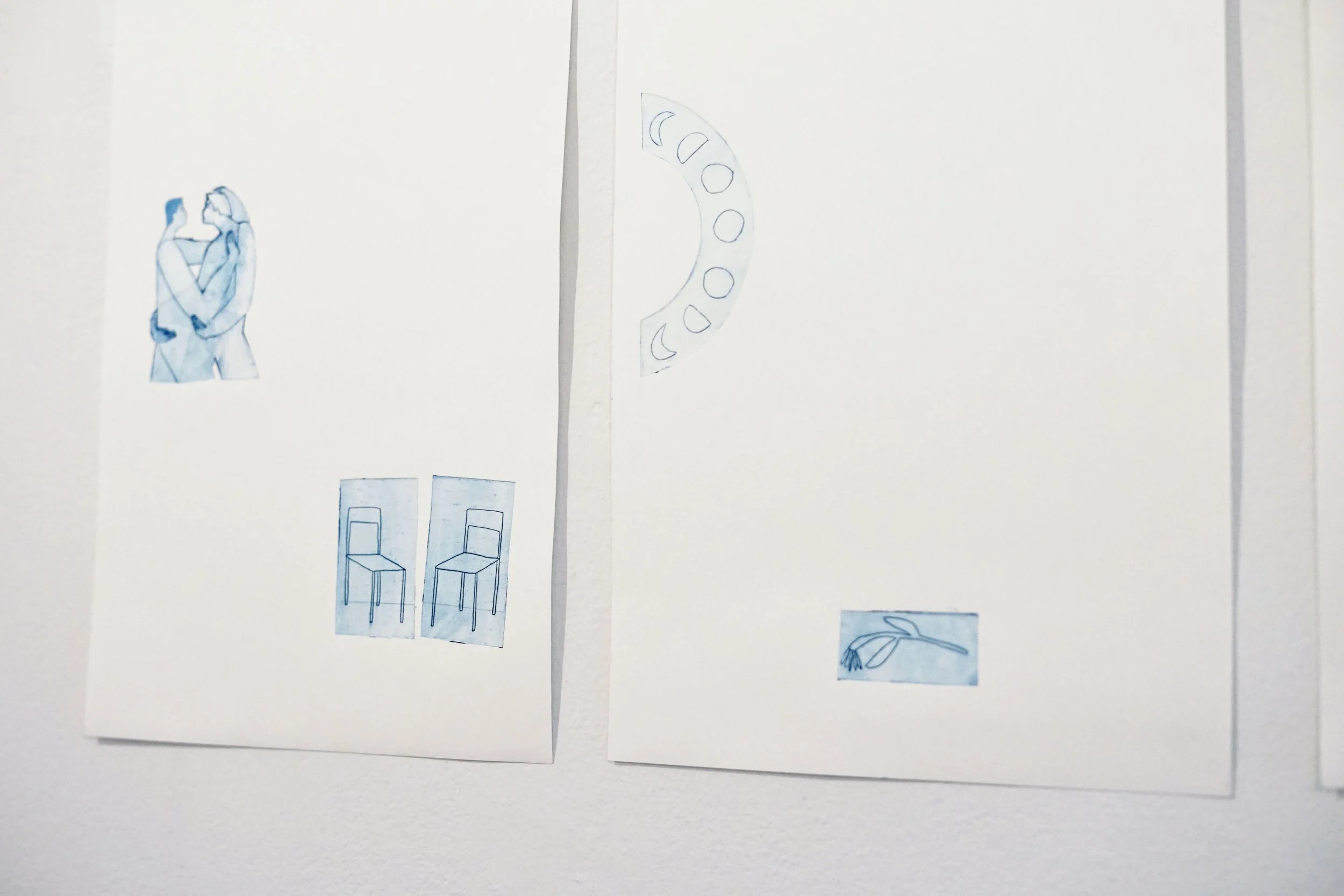 A series of Tetra Pak etchings on paper exhibited as part of Inky Bits, a studio print show with Art Hub and Matilda Ellis at the Nunnery Café, Bow Arts.